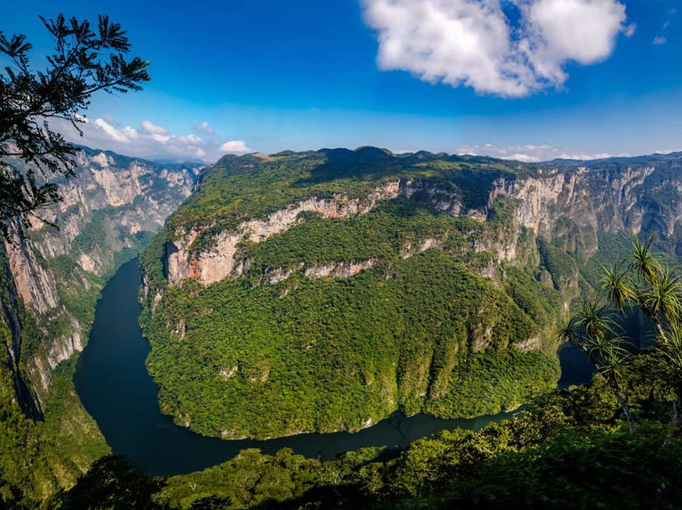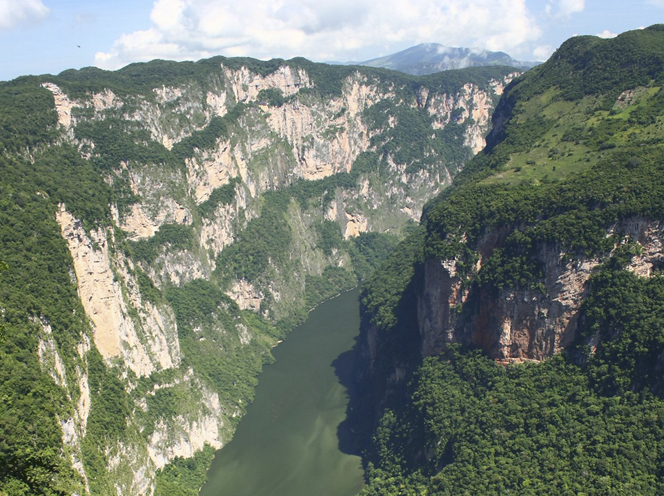 Esta falla geológica se formó hace más de 12 millones de años con paredes calcáreas que alcanzan casi 700 metros de altura y además de la magnitud verás su exuberante vegetación, los abundantes escurrimientos que le adornan y que a la vez alimentan el Grijalva, uno de los ríos más caudalosos del país.